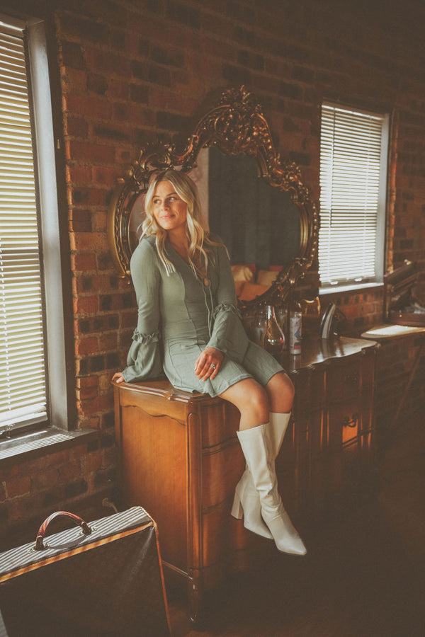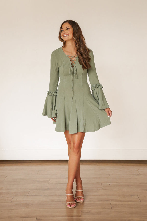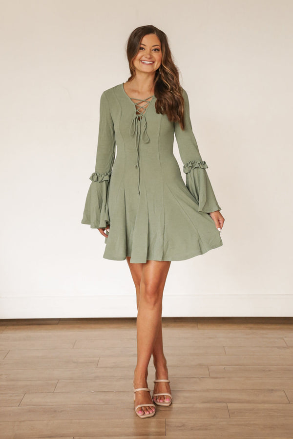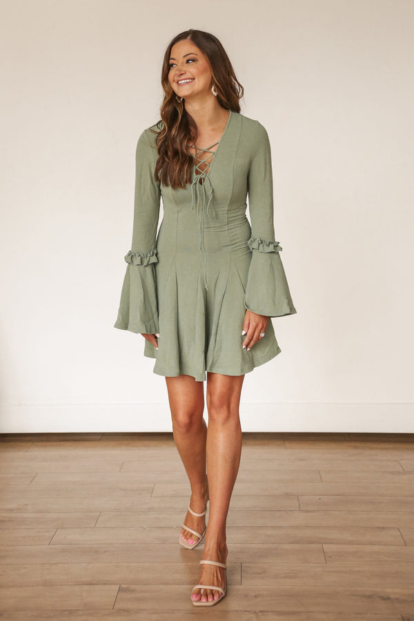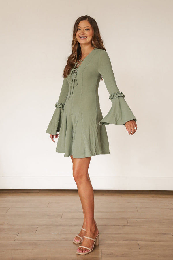 Bell Sleeve Sage Green Dress