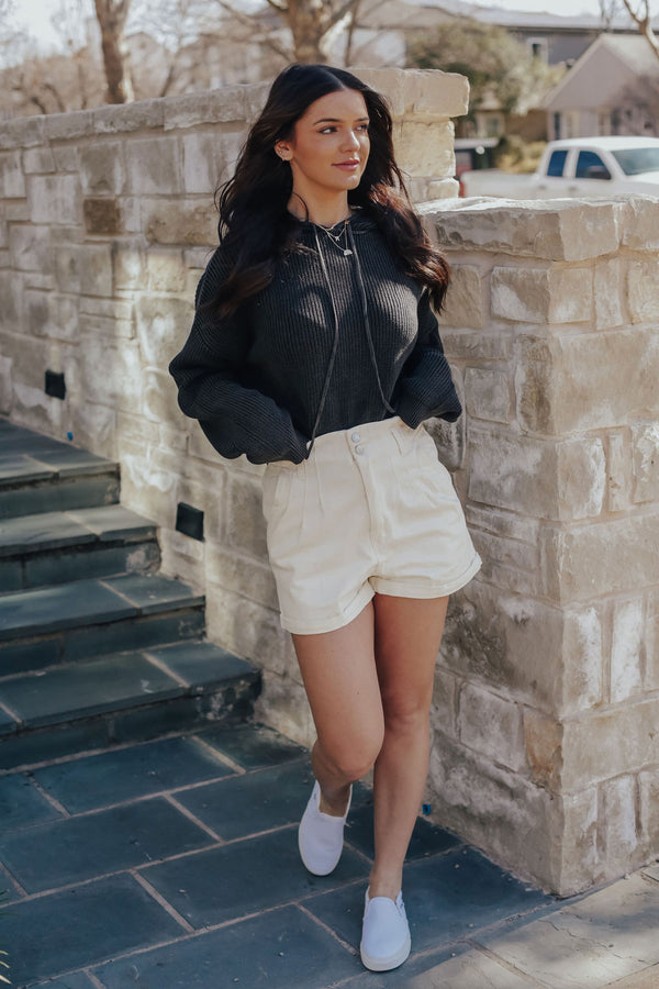 Charcoal Wash SweaterOur Charcoal Washed Sweater features a hooded neck and drawstrings.Knit.Model's Measurements:Height 5'7 | Bust 32 | Waist 24 | Hips 34 | Size SFabric100% Cotton